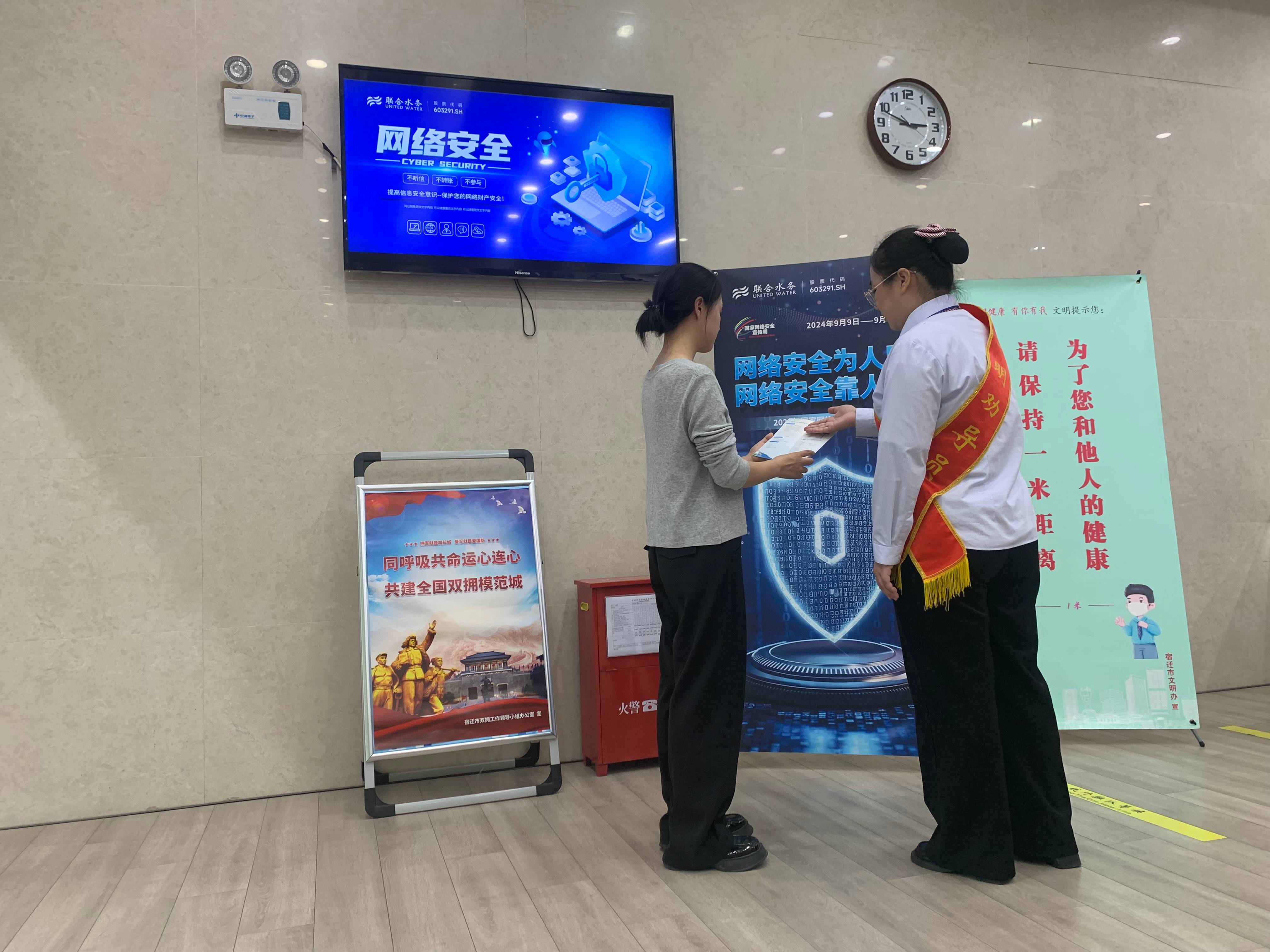 9月9日至9月15日是“2024年國家網(wǎng)絡(luò)安全宣傳周”。為增強公眾網(wǎng)絡(luò)安全意識,提高網(wǎng)絡(luò)安全防護(hù)技能,創(chuàng)造安全穩(wěn)定的網(wǎng)絡(luò)環(huán)境,聯(lián)合水務(wù)宿遷供水公司多措并舉開展了以“網(wǎng)絡(luò)安全為人民,網(wǎng)絡(luò)安全靠人民”為主題的網(wǎng)絡(luò)安全宣傳周活動。