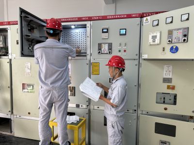 9月25日早晨六點(diǎn),高壓配電間改造的施工工人陸續(xù)入場(chǎng),施工單位開(kāi)始傅工線一側(cè)高壓電動(dòng)機(jī)和電容補(bǔ)償柜的并柜工作,為盡可能的減少施工過(guò)程中對(duì)王英水廠用電的影響,機(jī)電設(shè)備部電氣工程師萬(wàn)朝偉也全程在現(xiàn)場(chǎng)配合,指導(dǎo)拆線與柜體安裝工作。下午六點(diǎn),隨著室外高壓電線桿上刀閘“咔嗒”一聲合上,傅工線的進(jìn)線柜三相指示燈亮起,傅工線一側(cè)的并柜工作順利完成。