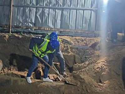深夜是多數(shù)人夢(mèng)鄉(xiāng),卻是水務(wù)人的戰(zhàn)場(chǎng)。為了最大程度降低搶修對(duì)居民生活用水的影響,搶修工作一般在夜間進(jìn)行。聯(lián)合水務(wù)宿遷公司搶修團(tuán)隊(duì)以“故障不過(guò)夜”的工作作風(fēng),用行動(dòng)踐行“保障供水安全”的承諾。 “一場(chǎng)搶修背后的聯(lián)合之力” 傍晚臨近下班時(shí)分,機(jī)電設(shè)備部接到項(xiàng)目部緊急通知,二水廠五期項(xiàng)目現(xiàn)場(chǎng)有電纜疑似破損發(fā)熱,隨時(shí)有斷電風(fēng)險(xiǎn)。機(jī)電設(shè)備部人員經(jīng)現(xiàn)場(chǎng)查看發(fā)現(xiàn),由二水廠一期低壓配電室通往一二期反沖洗泵房配電間主電纜損壞,隨時(shí)可能影響一二期生產(chǎn)運(yùn)行。搶修就是命令,制水部、機(jī)電設(shè)備部、項(xiàng)目部快速分工,在保障安全生產(chǎn)的前提下,對(duì)破損電纜進(jìn)行了緊急搶修。搶修人員爭(zhēng)分奪秒,凌晨悄然而至,直到搶修隊(duì)伍中有人喊出一聲“回家!”,這場(chǎng)“夜間聯(lián)合作戰(zhàn)”才宣告結(jié)束。