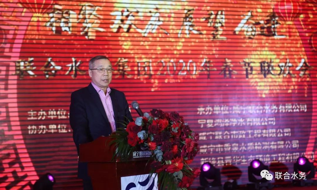聯(lián)合水務(wù)集團(tuán)董事長(zhǎng)兼總裁俞偉景先生發(fā)表總結(jié)講話(huà) 寒辭去冬雪,暖帶入春風(fēng)。1月21日,雨后初晴的香城泉都咸寧,山巒疊翠,碧空如洗,空氣格外清新,處處散發(fā)著盎然生機(jī)。聯(lián)合水務(wù)集團(tuán)第十四屆新春聯(lián)歡會(huì)暨咸寧聯(lián)合水務(wù)有限公司成立十周年慶典大會(huì),伴著氤氳香氣、霧氣繚繞,在這人間仙境盛大舉行。來(lái)自全集團(tuán)各地的領(lǐng)導(dǎo)、員工、演職人員以及社會(huì)各界的嘉賓、媒體朋友共計(jì)500余人出席,喜迎新春、共度盛景。 下午15:00,聯(lián)歡會(huì)正式拉開(kāi)了序幕。“踏著和諧的節(jié)拍感受春天的愛(ài),聯(lián)合水務(wù)的家園裝點(diǎn)春天的色彩……”在歡快祥和的氛圍當(dāng)中,一首由咸寧公司帶來(lái)的開(kāi)場(chǎng)歌伴舞《和諧家園》點(diǎn)燃了全場(chǎng)激情。絢麗的色彩,曼妙的舞姿,深情的歌詠,別致的造型,無(wú)一不讓到場(chǎng)嘉賓陶醉于其樂(lè)融融的祥和氛圍中。 聯(lián)合水務(wù)集團(tuán)自成立以來(lái),已走過(guò)了十六年的歷程。在成長(zhǎng)中發(fā)展,在發(fā)展中壯大。由成立之初只有宿遷一個(gè)供水項(xiàng)目,到如今擁有遍及國(guó)內(nèi)9省、16市的26家項(xiàng)目集團(tuán)公司,并且走出國(guó)門(mén)、走向國(guó)際,成功拓展了孟加拉海外項(xiàng)目。隨著集團(tuán)公司的發(fā)展,已擁有了1000多名員工,正像一個(gè)溫暖的大家庭、和諧的好家園。聯(lián)合水務(wù)集團(tuán)董事長(zhǎng)兼總裁俞偉景先生作為聯(lián)合水務(wù)大家庭的大家長(zhǎng),發(fā)表了熱情洋溢的新春致辭。他向生活和工作在全國(guó)各地的聯(lián)合水務(wù)的同事們及其家人、向遠(yuǎn)在異國(guó)他鄉(xiāng)、奮戰(zhàn)在集團(tuán)首個(gè)海外項(xiàng)目——孟加拉達(dá)卡項(xiàng)目的6位同事們送上最熱烈的新年問(wèn)候和最誠(chéng)摯的謝意。恰逢咸寧聯(lián)合水務(wù)有限公司成立10周年之際,俞總感慨萬(wàn)千,他說(shuō)改制10年來(lái),集團(tuán)公司投入了大量的人力、物力、財(cái)力,在聯(lián)合水務(wù)咸寧公司全體員工的共同努力下,咸寧的供水事業(yè)發(fā)生了令人欣喜的巨變,徹底改變了咸寧自來(lái)水公司原來(lái)設(shè)備落后、設(shè)施破爛、效率低下的局面。2019年,聯(lián)合水務(wù)在全國(guó)的5個(gè)城市的供水公司為總計(jì)70多萬(wàn)用戶(hù)提供了優(yōu)質(zhì)的供水服務(wù),我們的污水處理公司為全國(guó)9個(gè)城市處理了超過(guò)1億噸的生活和工業(yè)污水。為當(dāng)?shù)氐乃h(huán)境保護(hù)、為祖國(guó)的綠水青山做出了我們的貢獻(xiàn)。最后,俞總向全體聯(lián)合水務(wù)的員工在去年所作出的每一份努力表示衷心的感謝!2020年,他將與全體員工攜手奮進(jìn)、不負(fù)韶華、邁向新的征程。