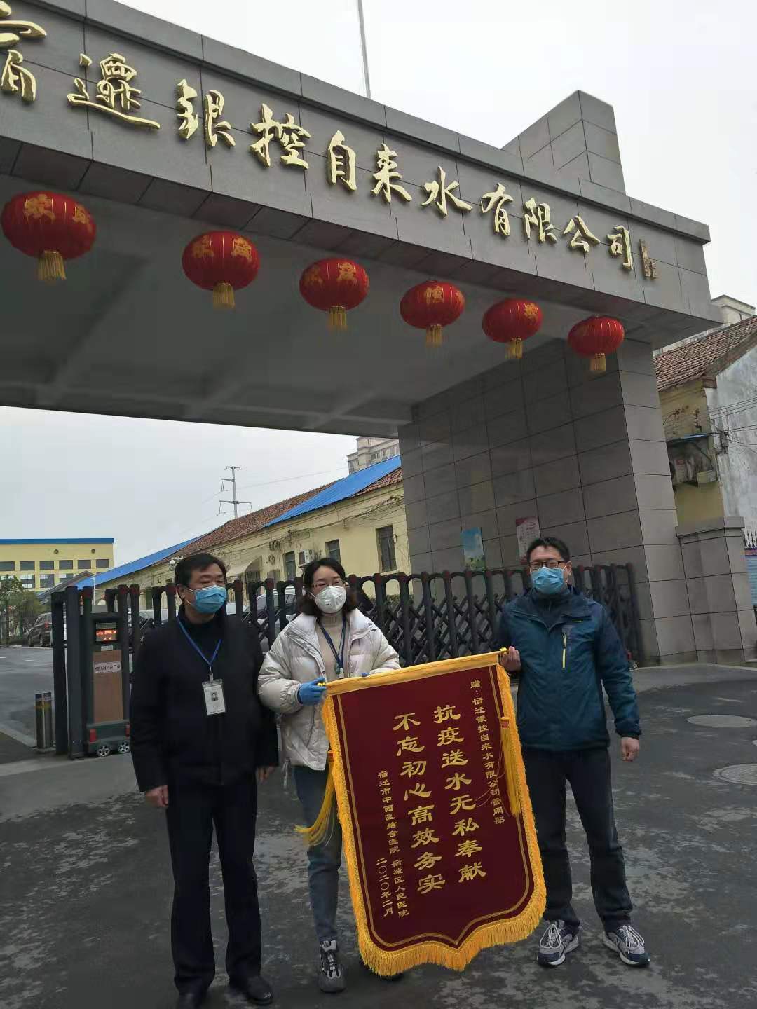 圖2:總經(jīng)理助理郁莉代表公司接下錦旗 一面鮮紅的錦旗,彰顯了聯(lián)合水務(wù)銀控供水人的無私真情、赤誠丹心。疫情期間,這樣的旗幟早已深深樹立在了銀控供水人的心中。1月28日,公司管網(wǎng)部緊急為宿城區(qū)耿車鎮(zhèn)疫情防控點(diǎn)安裝供水管道并供水,連續(xù)作戰(zhàn)7小時,完成了平時需要3天才能完成的施工項目;2月2日,公司火速增援宿遷湖濱新區(qū)新源水務(wù)宿遷市新冠病毒集中治療中心供水建設(shè)項目,接到命令后,施工人員沒有考慮個人安危,只有勇往直前,確保了2天內(nèi)保質(zhì)保量完成了市政府下達(dá)的任務(wù),為全市抗擊疫情做出了應(yīng)有的貢獻(xiàn)。 新冠肺炎疫情出現(xiàn)以來,社會各界萬眾一心,眾志成城,全力以赴,抗?fàn)幵谶@個沒有硝煙的戰(zhàn)場上。疫情當(dāng)前,聯(lián)合水務(wù)宿遷銀控自來水有限公司深知,時間就是生命,以最快速度為各個疫情防控點(diǎn)保障供水就是為戰(zhàn)勝疫情做貢獻(xiàn)。公司以社會擔(dān)當(dāng)為己任,危難面前,不計得失,不畏艱險,火速出擊,奮戰(zhàn)在抗擊疫情的保障供水戰(zhàn)線上。我們向武漢“火神山醫(yī)院”建設(shè)精神學(xué)習(xí),打造一樣堅韌的“銀控速度”,誓與全市人民一道為早日戰(zhàn)勝疫情付出全力,無私無畏,奮勇當(dāng)先,唱響贊歌,迎接勝利。 |