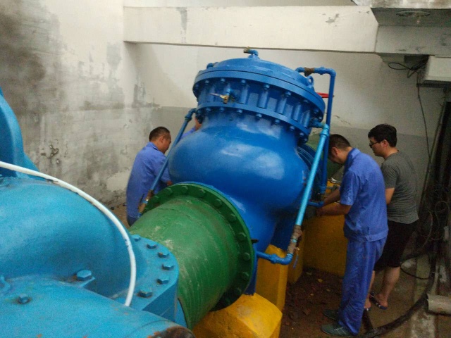 入夏以來,氣溫不斷升高,供水量也節(jié)節(jié)攀升。尤其是7月22日以來,氣溫連續(xù)突破35℃的高溫線,供水量更是達(dá)到了歷史最高值,隨之而來的是因高溫和高峰供水造成的各類生產(chǎn)問題,在短短一周之內(nèi),生產(chǎn)部門便向機(jī)電設(shè)備部發(fā)送大小故障維修申請十余起。 面對高溫挑戰(zhàn),宿遷公司制水部、機(jī)電部、管網(wǎng)部等部門密切配合,及時搶修保障供水安全。7月22日凌晨,由于電力故障,造成駱馬湖泵站散熱風(fēng)機(jī)燒壞,泵房內(nèi)電機(jī)溫度不斷升高。機(jī)電部維修值班人員在接到通知后一邊安排人員前往現(xiàn)場進(jìn)行故障排查,另一路人員則前往運河備用泵站將其內(nèi)部的散熱風(fēng)機(jī)拆除兩臺帶往駱馬湖泵站進(jìn)行安裝,以解應(yīng)急之需,直至早上8點左右才完成散熱風(fēng)機(jī)的搶修任務(wù)。 9點05分左右,駱馬湖一號機(jī)組出水端伸縮器出現(xiàn)漏水狀況,且水量較大、水壓高,需要停機(jī)進(jìn)行檢修。即使關(guān)閉出水閥門,仍有漏水現(xiàn)象,只有切換備用水源才能予以維修。經(jīng)請示,上午10點10分左右完成了水源的切換工作,機(jī)電部門人員便開始對伸縮器和閥門進(jìn)行拆解維修。此時正值高溫時段,泵站內(nèi)由于電機(jī)工作放熱,溫度更是逼近39攝氏度,在連續(xù)奮戰(zhàn)了7個小時之后,終于將損壞的伸縮器更換完畢,完成了閥門的修復(fù)工作。此時大家都已經(jīng)體力透支,短暫的休息之后,緊接著又趕往運河泵站開關(guān)閥門和機(jī)組,將水源切換回來,晚上8點,整場維修終于結(jié)束。 7月29日,駱馬湖泵站至一水廠原水DN1200的原水管道又突發(fā)了漏水事故,由于其是玻璃鋼管,如果不及時進(jìn)行維修,破口會將不斷的擴(kuò)大,影響全市的安全供水。管網(wǎng)部、機(jī)電部、制水部等部門緊密合作,奮戰(zhàn)搶修。由于玻璃鋼管道的特殊性,必須進(jìn)行停水維修,需要啟用運河備用泵站,但由于上游來水,運河備用水源水質(zhì)惡化,耗氧量超過6.0mg/L,為保障用出廠水水質(zhì),只能采取投加應(yīng)急藥劑的處理措施。在趙總的協(xié)調(diào)下,制水部、水檢公司、機(jī)電部門全力開動起來,冒著高溫開展各自工作。水檢中心取水進(jìn)行投加實驗,確定應(yīng)急投加量,制水部負(fù)責(zé)調(diào)整人員到運河泵站做準(zhǔn)備工作,機(jī)電部人員到運河泵站進(jìn)行電器設(shè)備檢查,對投加設(shè)備進(jìn)行調(diào)試。為保障30日能夠順利開展工作,29日下午,先期開啟運河一臺機(jī)組進(jìn)行了投加實驗,并取得了成功。 30日下午2點,各部門人員便齊聚運河泵站各自展開了工作。下午2點40分,順利將運河泵站機(jī)組開啟供水,原水管道開啟排放閥門進(jìn)行放水修理。3點10分左右,正當(dāng)大家準(zhǔn)備離開的時候,運河泵站3號機(jī)組突發(fā)異響,經(jīng)初步判斷應(yīng)該是葉輪被卡,需要拆卸修理。于是緊急切換1號機(jī)組供水,機(jī)電部門人員又冒著高溫開始了搶修工作,直至夜間22點駱馬湖恢復(fù)供水。