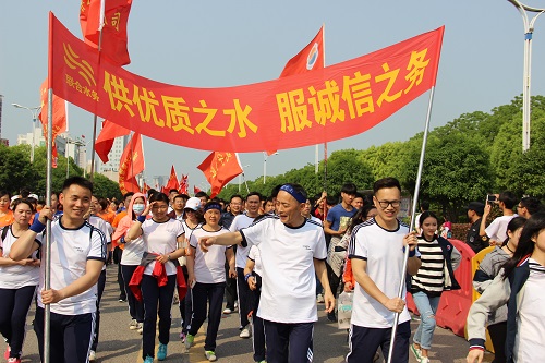 4月15日上午,咸寧聯(lián)合水務(wù)有限公司組織30名員工,在人事行政副總經(jīng)理張偉華的帶領(lǐng)下參加咸寧城區(qū)第28屆春季健步跑暨2017咸寧微型馬拉松賽活動(dòng)。 上午9時(shí),陽(yáng)光明媚,微風(fēng)和煦,起跑點(diǎn)人潮洶涌,氣氛熱烈,公司旗手高舉“供優(yōu)質(zhì)之水,服誠(chéng)信之務(wù)”和“咸寧聯(lián)合水務(wù)有限公司”的旗幟組成方陣整裝待發(fā)。隨著主持人一聲令下,各參賽者朝著終點(diǎn)方向次第前行,開(kāi)始長(zhǎng)達(dá)5公里的快樂(lè)健身賽跑。 參加活動(dòng)的員工,平時(shí)工作都是在辦公室里忙碌,沒(méi)有多少時(shí)間跑步健身,有的年紀(jì)已過(guò)中年,身體素質(zhì)下滑,所以開(kāi)跑不大一會(huì),疲勞感陣陣襲來(lái),拉起了風(fēng)箱,感覺(jué)難以繼續(xù)下去了,但大家在高高飄揚(yáng)的“咸寧聯(lián)合水務(wù)有限公司”旗幟帶領(lǐng)下,以極高的精神意志力,克服身體的疲累咬牙前行,在開(kāi)跑半個(gè)小時(shí)左右,大家都按賽跑路線(xiàn)順利到達(dá)終點(diǎn),沒(méi)有一人掉隊(duì)。 此次活動(dòng)不僅是身體上的考驗(yàn),更是心理上的考驗(yàn),它給我們的感受遠(yuǎn)比成績(jī)要豐富的多,體現(xiàn)了咸寧聯(lián)合水務(wù)人努力拚搏、誓不服輸?shù)倪\(yùn)動(dòng)精神,展示了聯(lián)合水務(wù)人的昂揚(yáng)士氣與蓬勃活力。